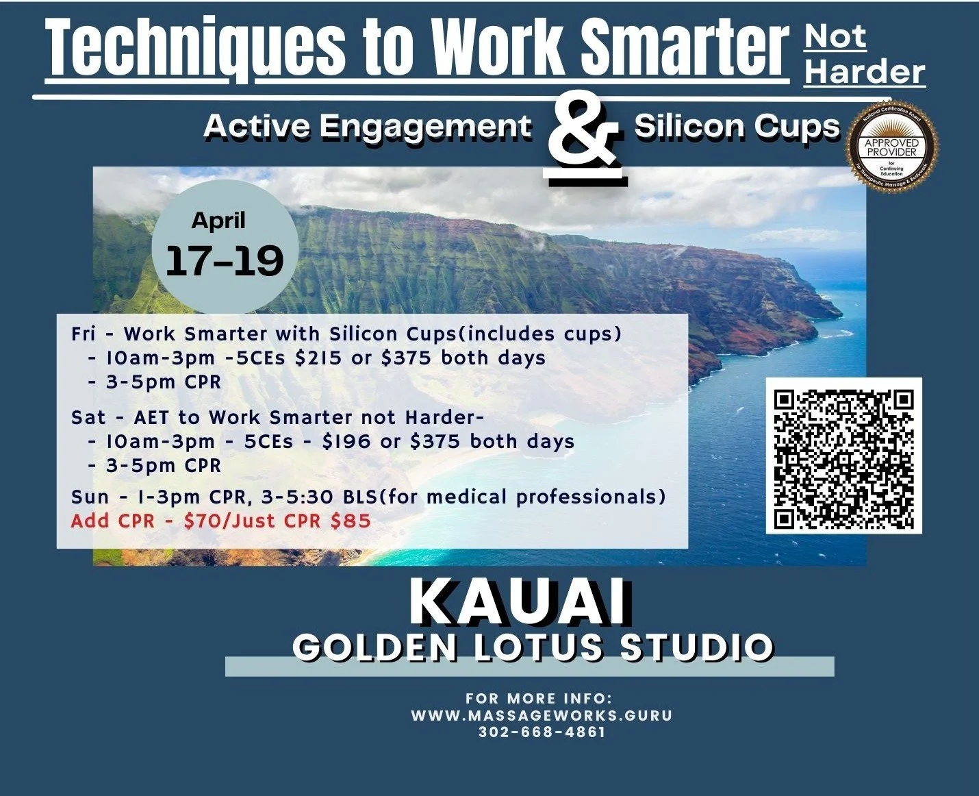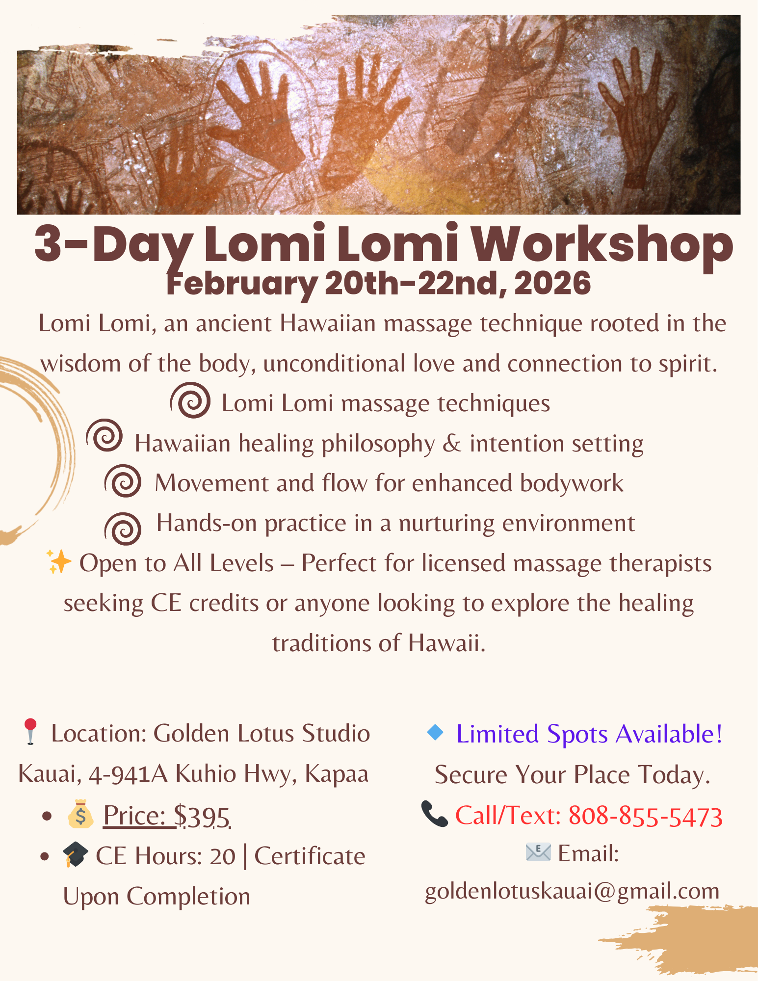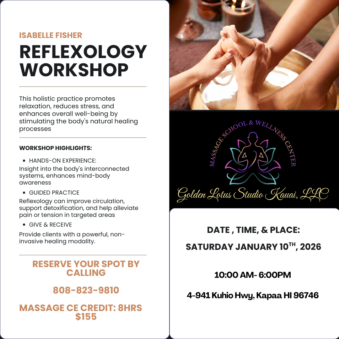 Kauai Massage Trainings, located in Kapaa, Hawaii, offers a 9-month, 570-hour massage licensing program to prepare students for certification by the Hawaii Board of Massage. In addition, we host a 3-day retreat-style workshops focused on renewal, nourishment, and inspiration. The program is open to anyone interested in learning massage and bodywork while embracing a health and wellness lifestyle. Students gain practical skills in various modalities, preparing them to work in spas or private settings. The program has successfully helped many students become licensed massage therapists in Hawaii and beyond.