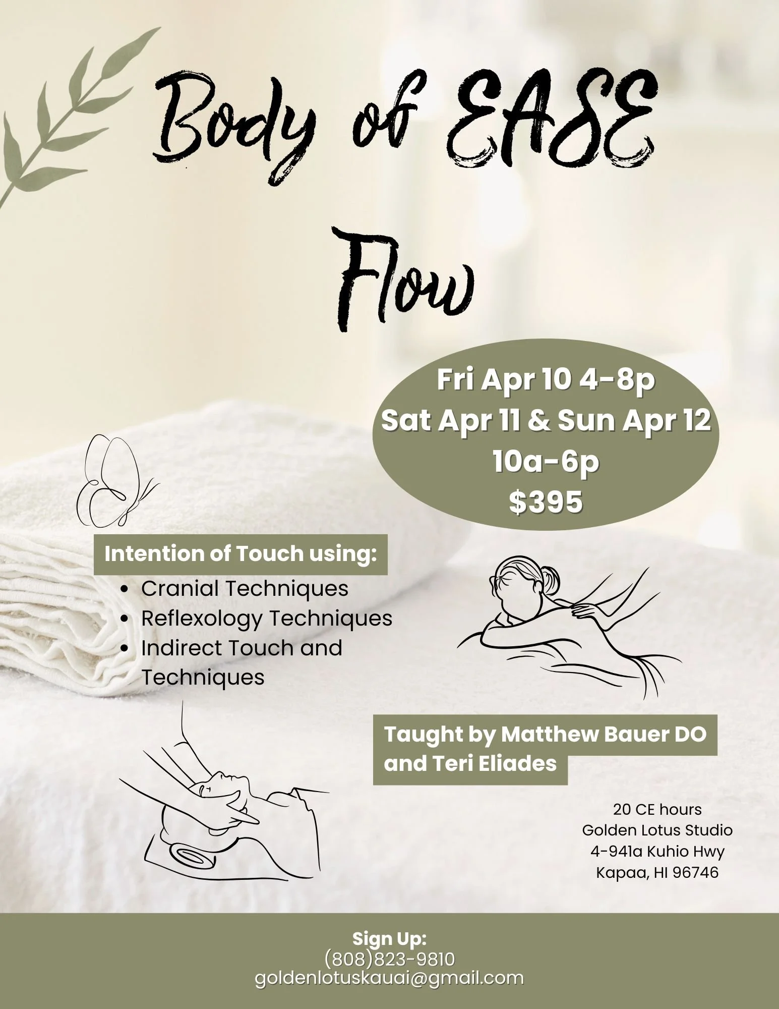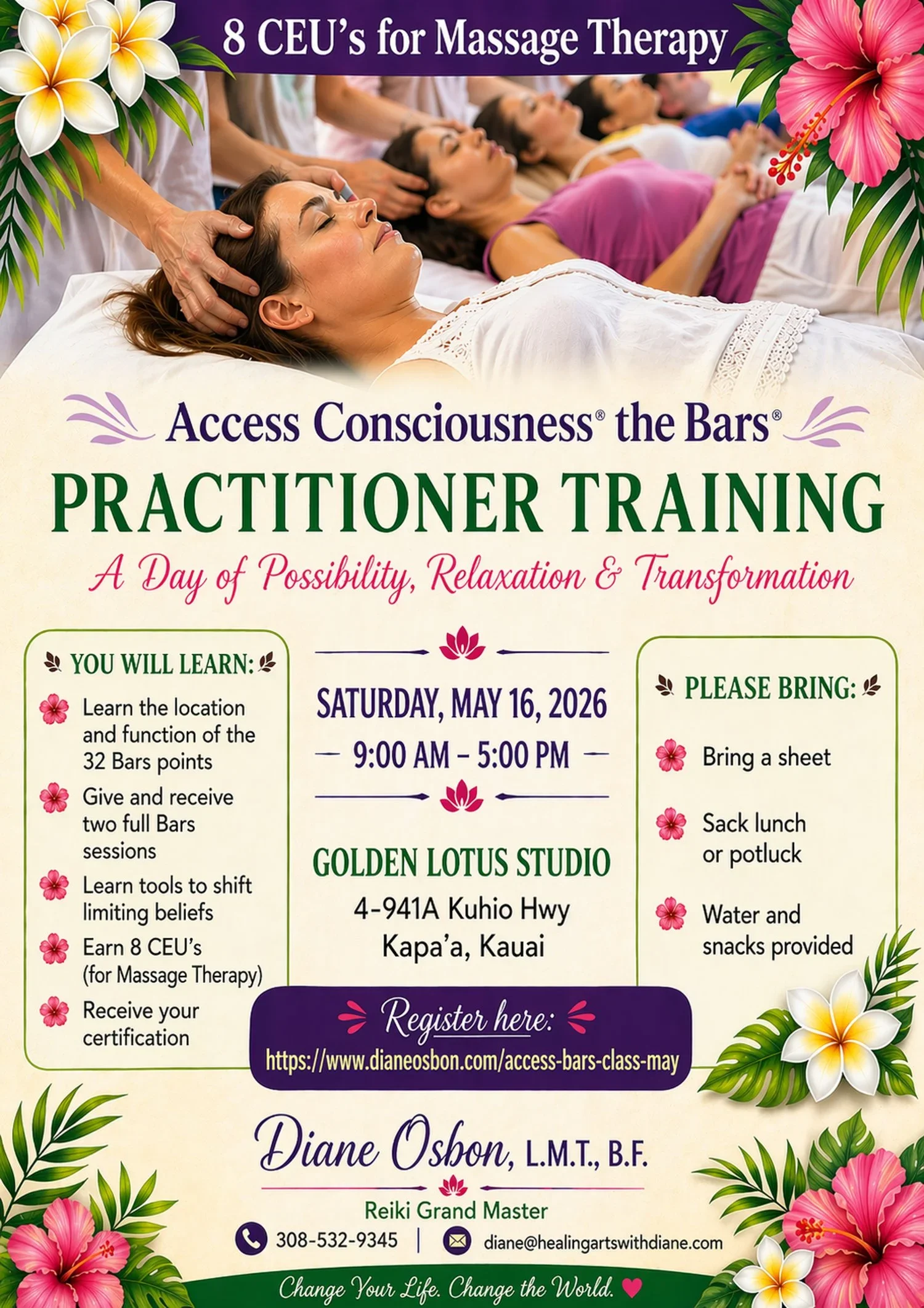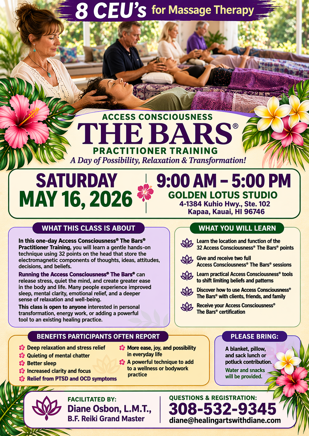 Kauai Massage Trainings, located in Kapaa, Hawaii, offers a 9-month, 570-hour massage licensing program to prepare students for certification by the Hawaii Board of Massage. In addition, we host a 3-day retreat-style workshops focused on renewal, nourishment, and inspiration. The program is open to anyone interested in learning massage and bodywork while embracing a health and wellness lifestyle. Students gain practical skills in various modalities, preparing them to work in spas or private settings. The program has successfully helped many students become licensed massage therapists in Hawaii and beyond.