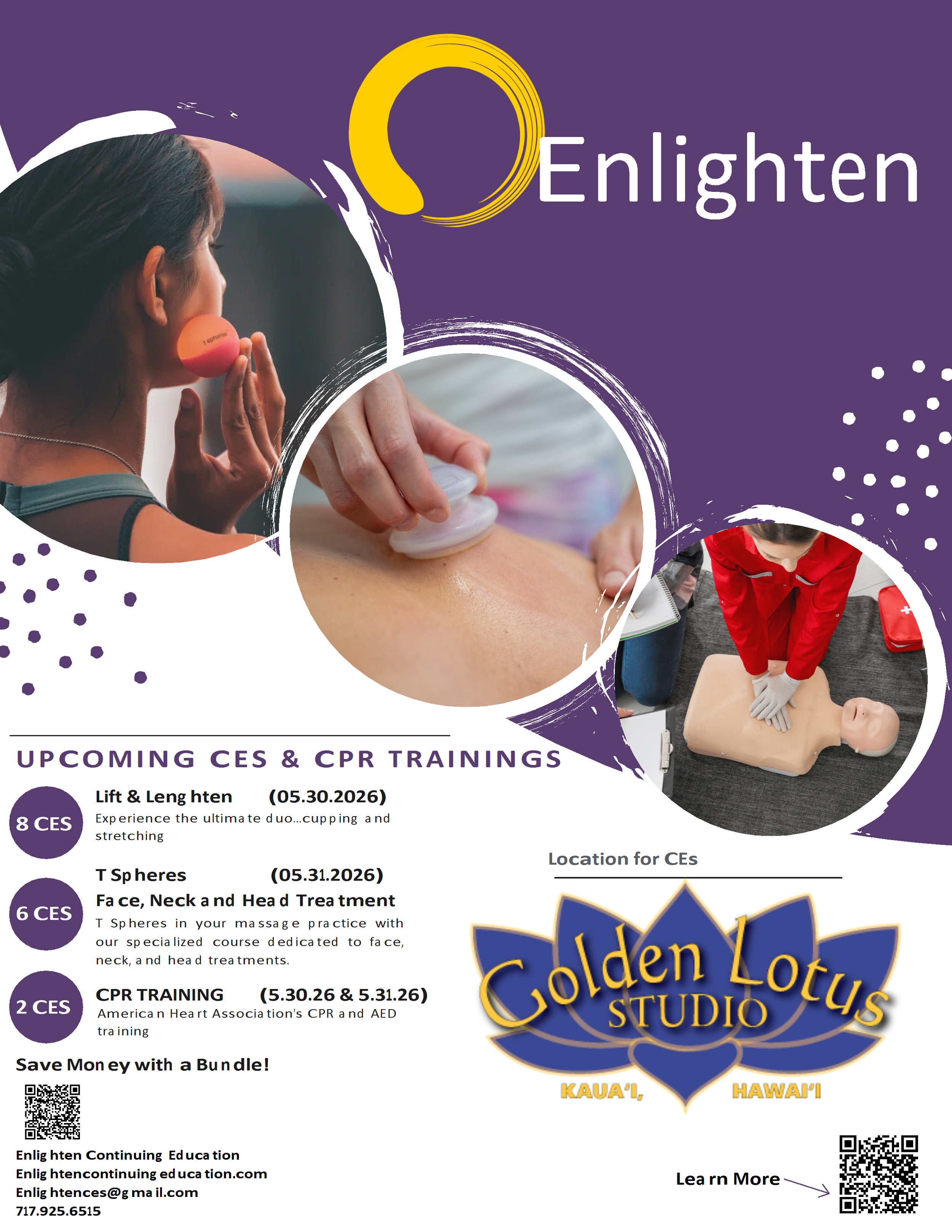 Kauai Massage Trainings, located in Kapaa, Hawaii, offers a 9-month, 570-hour massage licensing program to prepare students for certification by the Hawaii Board of Massage. In addition, we host a 3-day retreat-style workshops focused on renewal, nourishment, and inspiration. The program is open to anyone interested in learning massage and bodywork while embracing a health and wellness lifestyle. Students gain practical skills in various modalities, preparing them to work in spas or private settings. The program has successfully helped many students become licensed massage therapists in Hawaii and beyond.